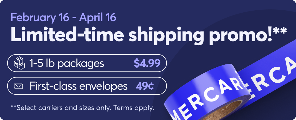 **Terms apply. Promotional shipping rates apply to new or updated listings. After April 16, 2026, these promotional rates will end and eligible shipments will revert to the regular (non-promotional) Mercari prepaid label rate for the selected service.